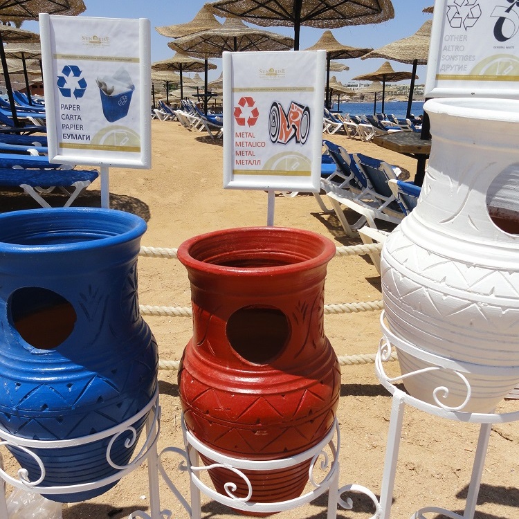 Segregacja pod palmami Segregowanie odpadów w egzotycznym klimacie f