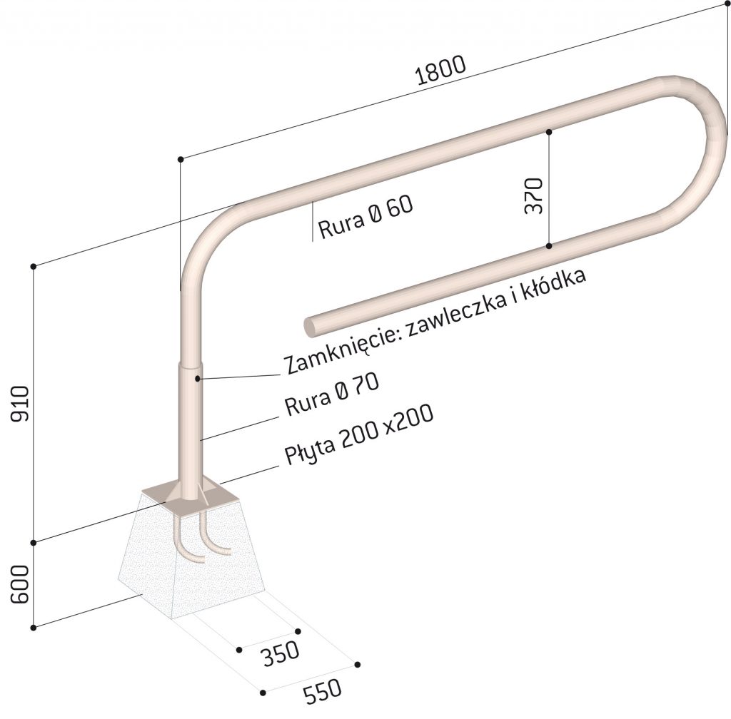 – wykonana ze stalowej rury o średnicy 60, zakończoną zatyczką w kolorze czarnym,