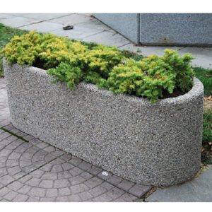 Okrągła donica betonowa służąca najczęściej jako wyposażenie dodatkowe przed budynkami użyteczności publicznej.