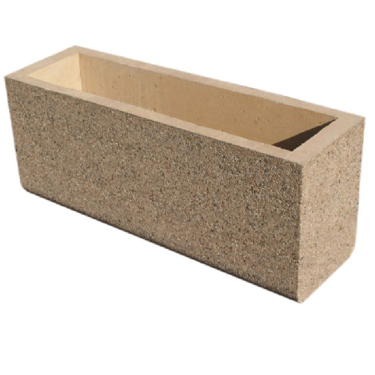 Donica betonowa wykonana z betonu architektonicznego z kruszywami mineralnymi, cechującego się wysoką wytrzymałością i mrozoodpornością. Dostępne kolory betonu: szary, żółty, biały, czarny, szary gładki oraz grafitowy gładki.