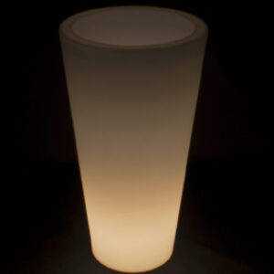Podświetlana donica wykonana z polietylenu. Dzięki zastosowaniu jakościowo najlepszych materiałów produkt jest trwały oraz odporny na działania warunków zewnętrznych. Zastosowanie oświetlenia LED wewnątrz zapewnia ciekawą oraz energooszczędną ozdobę świetnie wpasowującą się zarówno w domowe zacisze jak i zieleń tarasu oraz ogrodu, hole nowoczesnych budynków użytku publicznego. Produkt łączy w sobie dwie funkcję – eleganckiej ozdobnej donicy oraz oświetlenia pozostawiającego półmrok tworząc tym samym charakterystyczną atmosferę mogącą wspierać tarasy domów weselnych lub hotelowe lobby.
