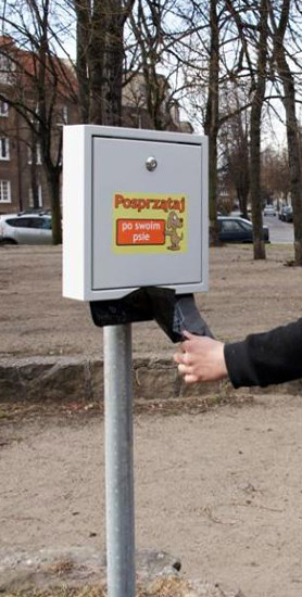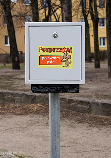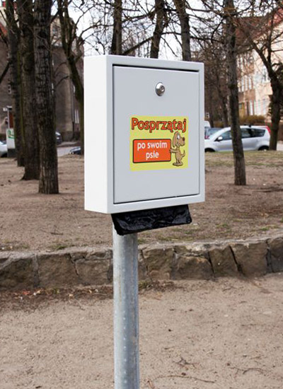 – opis na froncie informuje o przeznaczeniu i mobilizuje do sprzątania po psach,