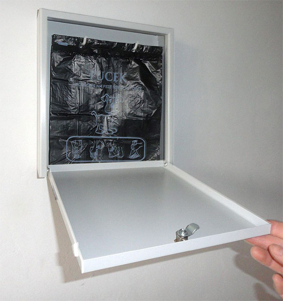W pojemniku są umieszczane woreczki foliowe oxy-biodegradowalne, które można wyciągać pojedynczo przez oderwanie od całej partii zamocowanej wewnątrz i niedostępnej bez użycia klucza. Znajduje zastosowanie w parkach, przy ciągach spacerowych, na terenach rekreacyjnych, przy wybiegach dla psów, itp.