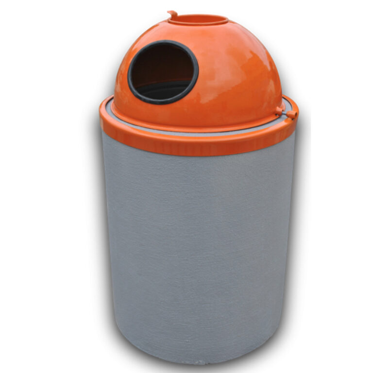Kosz betonowy o podstawie okrągłej, z dodatkową kopułą.