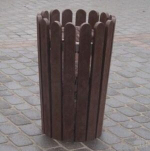 Kosz drewniany idealny do przestrzeni miejskiej oraz do ogrodów. Struktura i kolor materiału, z którego jest wykonany przypomina drewno. Wyglądem kosz parkowy znakomicie wpasowuje się w przestrzeń zieloną i tworzy elegancką i spójną kompozycję.