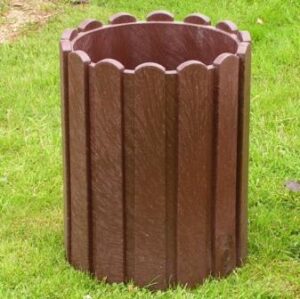 Kosz drewniany idealny do przestrzeni miejskiej oraz do ogrodów. Struktura i kolor materiału, z którego jest wykonany przypomina drewno. Wyglądem kosz parkowy znakomicie wpasowuje się w przestrzeń zieloną i tworzy elegancką i spójną kompozycję.