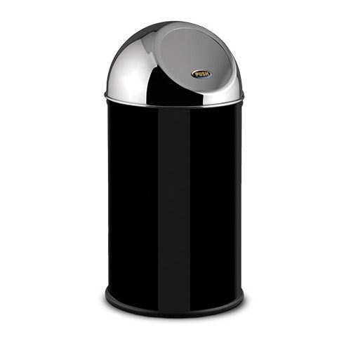 Estetycznie wyglądający kosz biurowy o okrągłym kształcie. Kosz na odpady ma kulistą pokrywą, którą można zdejmować. Otwór kosza zamykany na szczelna klapę, która uchyla się do jego wnętrza.