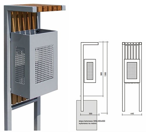 – wewnętrzny pojemnik z blachy ocynkowanej z perforacją (KU014/35W) lub bez perforacji (KU014a/35W)