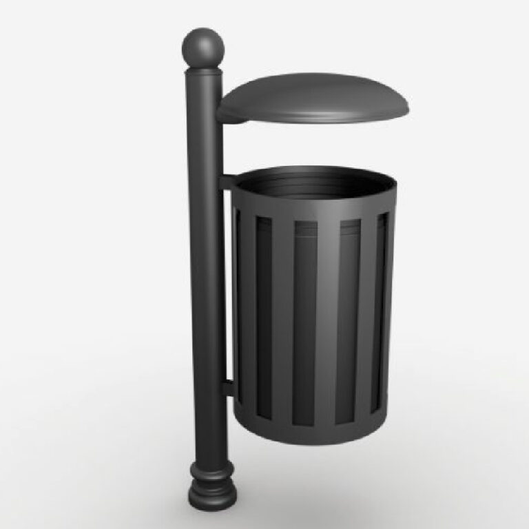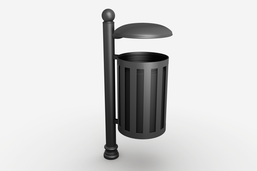 - kosz miejski oparty na konstrukcji stalowo-żeliwnej