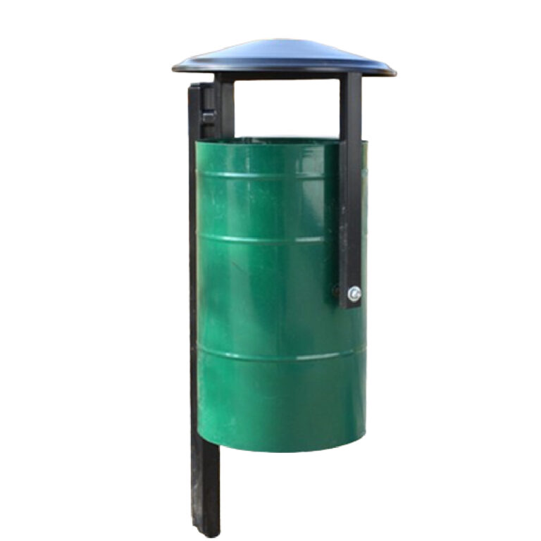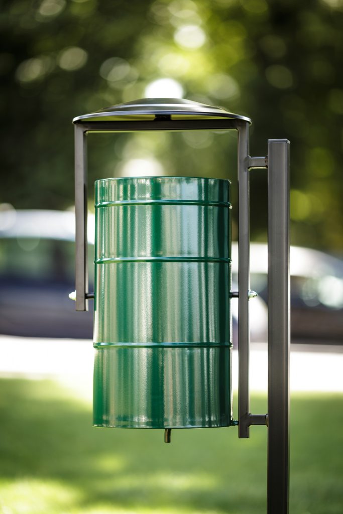 - kosz parkowy na słupku z profilu 40×40, daszek i pojemnik wykonane z blachy ocynkowanej malowanej proszkowo,