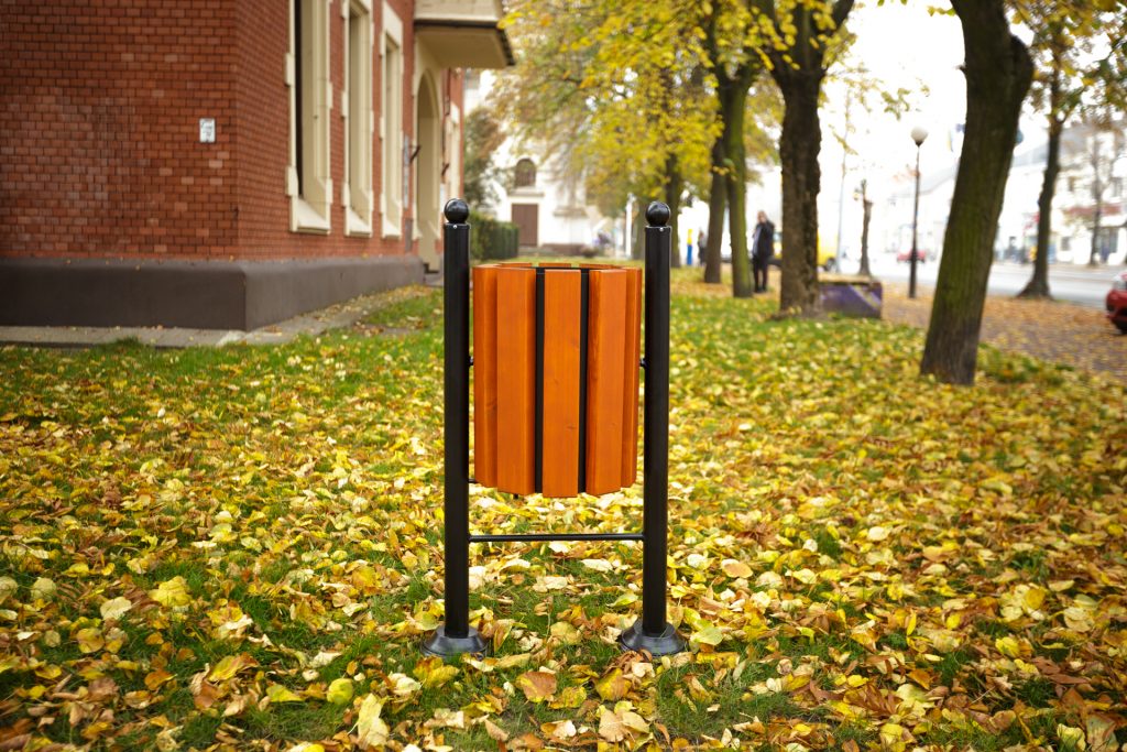- pojemnik na odpady kosza miejskiego obudowany listwami z drewna impregnowanego, lakierowanego (kolor lakieru do uzgodnienia),