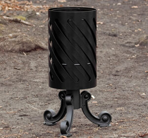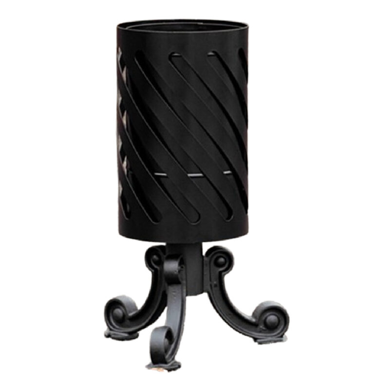 - sposób montażu kosza parkowego: jako wolno stojący lub poprzez przykręcenie żeliwnych nóg kosza do podłoża za pomocą kołków rozporowych dostarczanych w komplecie.
