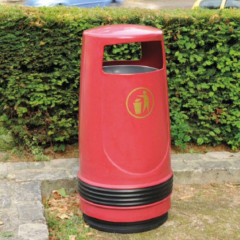 Kosz na odpady wykonany z polietylenu nieodkształcającego się. W celu zwiększenia odporności pojemnika na opady został poddany obróbce anty-UV.