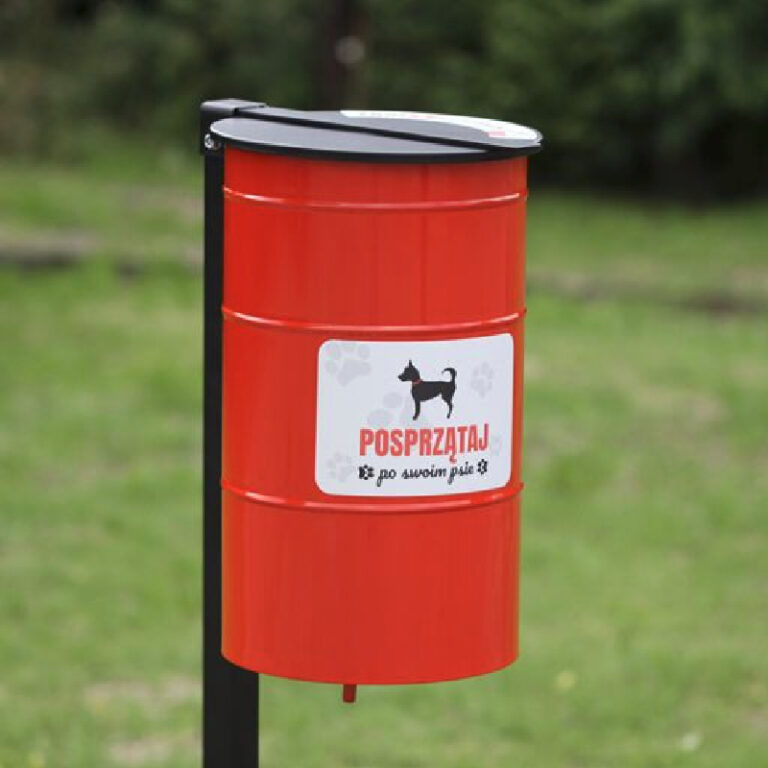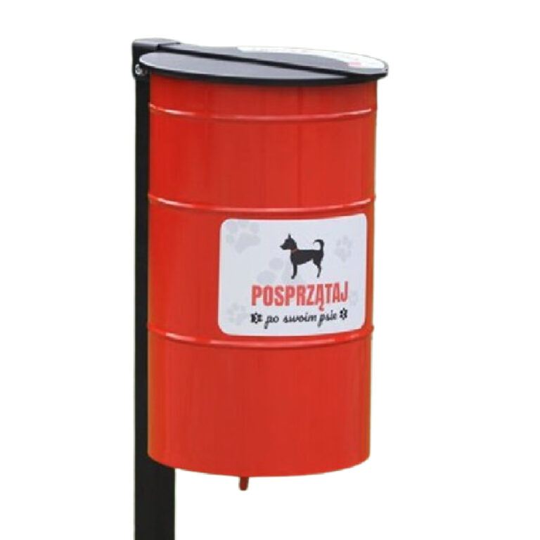Kosz przeznaczony na składowanie psich nieczystości który dzięki zastosowaniu klapy osiągnął elegancki i schludny wygląd .Wykonany z metalu, malowany proszkowo zapewnia wysoką trwałość oraz odporność na czynniki zewnętrzne. Dzięki zastosowanej klapie zapobiega ona dostawaniu się opadów do wewnątrz oraz ogranicza wydostawanie się nieprzyjemnych zapachów na zewnątrz. Dodatkowym atutem jest opis ” Posprzątaj po swoim psie” który w skuteczny sposób informujący o przeznaczeniu.