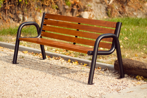 Ławki miejskie oferowane są w dwóch wariantach kolorystycznych desek: tek i mahoń