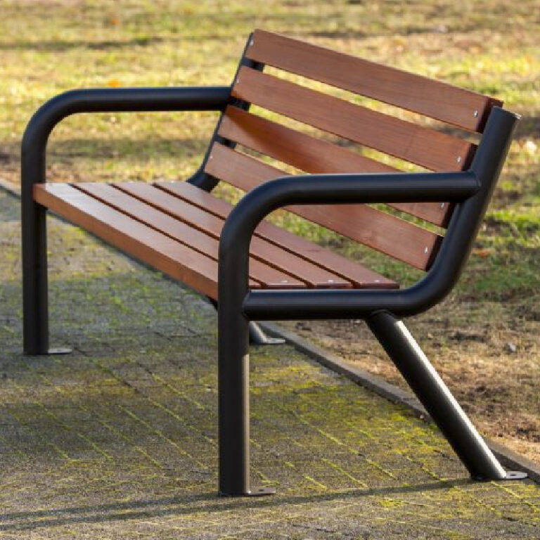 – stalowy stabilny stelaż ławki wykonany z rury giętej fi 60 mm ocynkowanej, malowanej proszkowo,