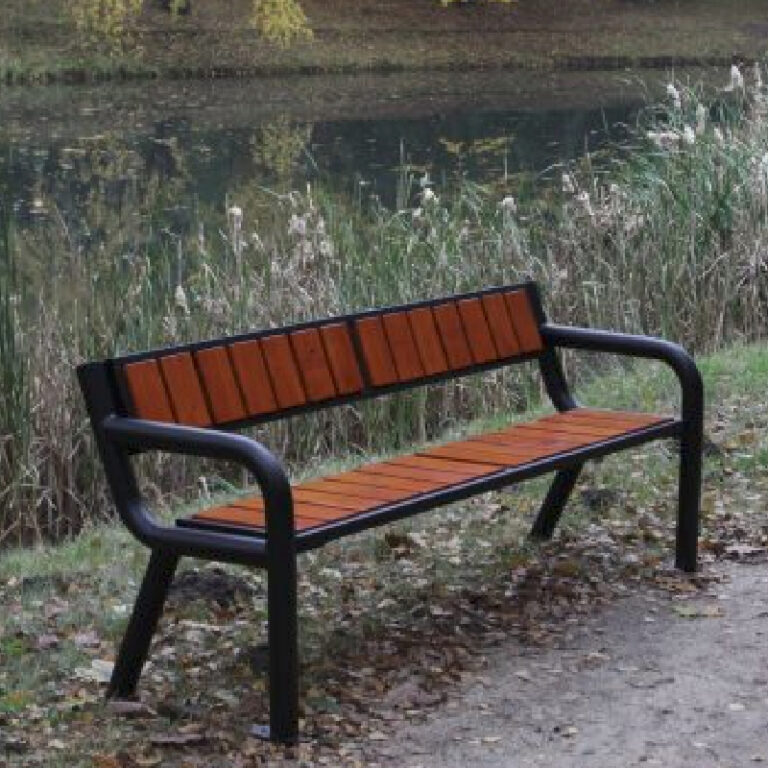 – stalowy stabilny stelaż ławki wykonany z rury giętej fi 60 mm ocynkowanej, malowanej proszkowo,