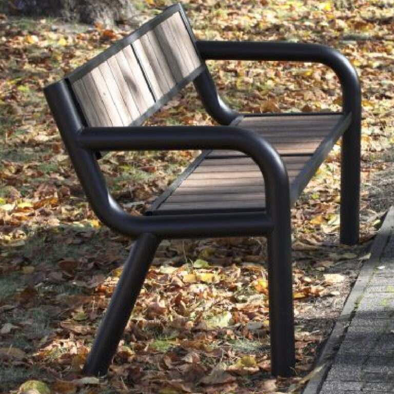 – stalowy stabilny stelaż ławki wykonany z rury giętej fi 60 mm ocynkowanej, malowanej proszkowo,