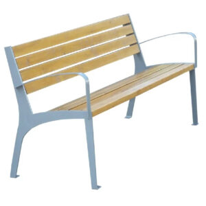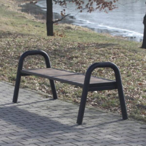 Konstrukcja ławki: – podpory stalowe wycinane laserowo – siedzisko i oparcie z listew drewnianych