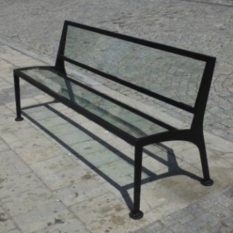 Konstrukcja ławki: – podpory stalowe wycinane laserowo – siedzisko i oparcie ze szkła klejonego