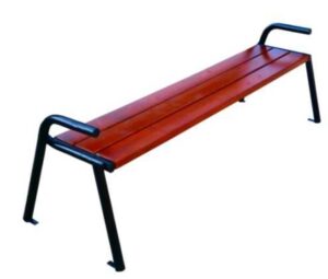 Odmiana ławki L145 w wersji bez oparcia oraz z innym wykończeniem podłokietników.