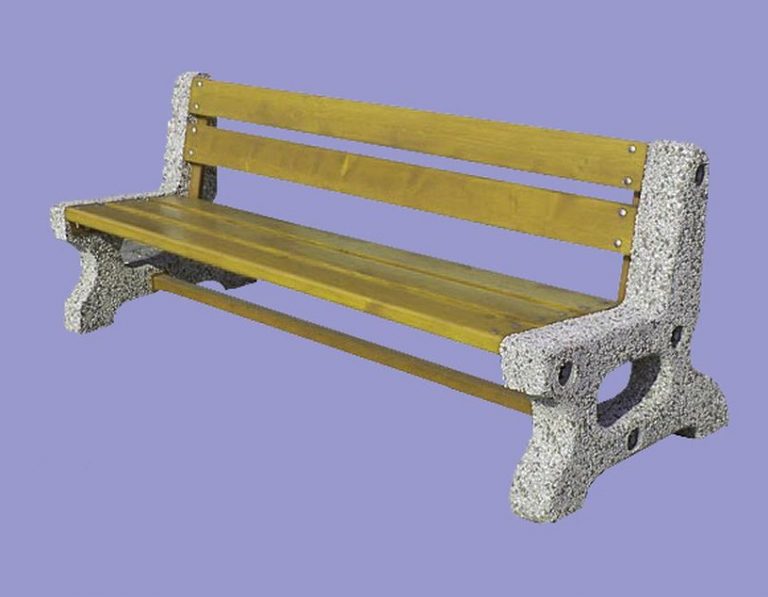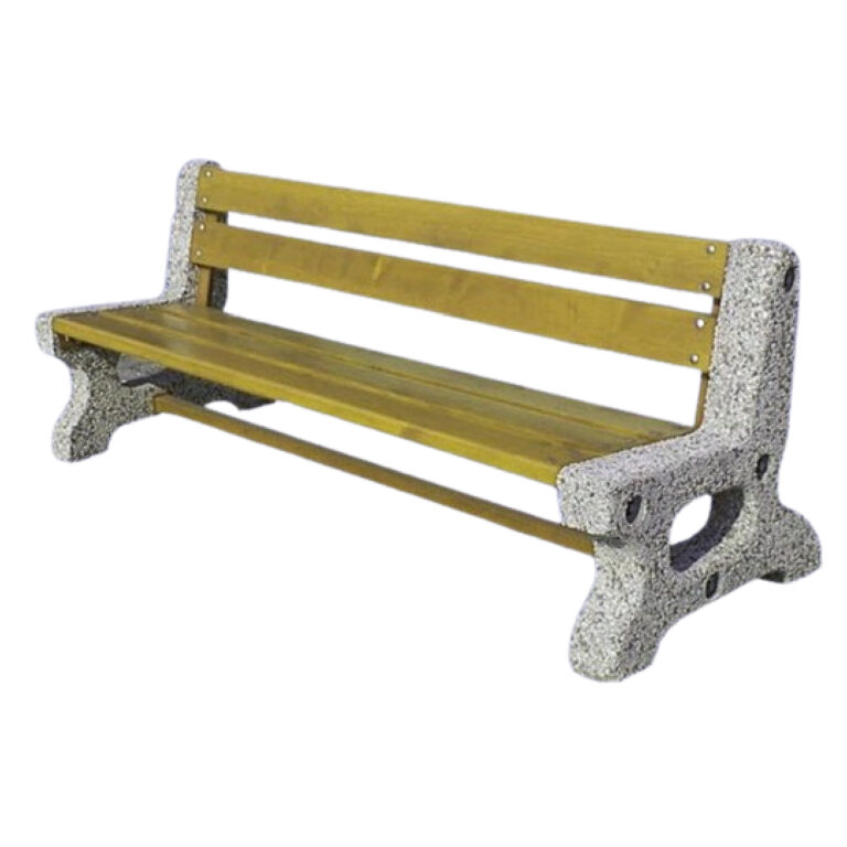 Ławka parkowa z oparcie, wykonana z betonowej podstawy i drewnianego siedziska. Ławka miejska tego typu świetnie komponuje się w parkach i na innych terenach zielonych.