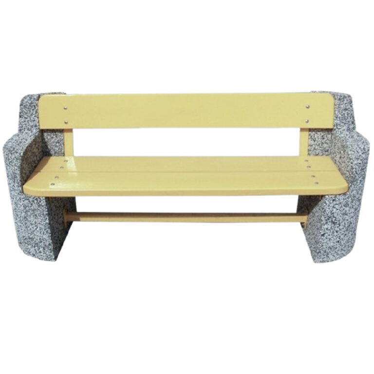 Ławka parkowa z oparcie, wykonana z betonowej podstawy i drewnianego siedziska. Ławka miejska tego typu świetnie komponuje się w parkach i na innych terenach zielonych.