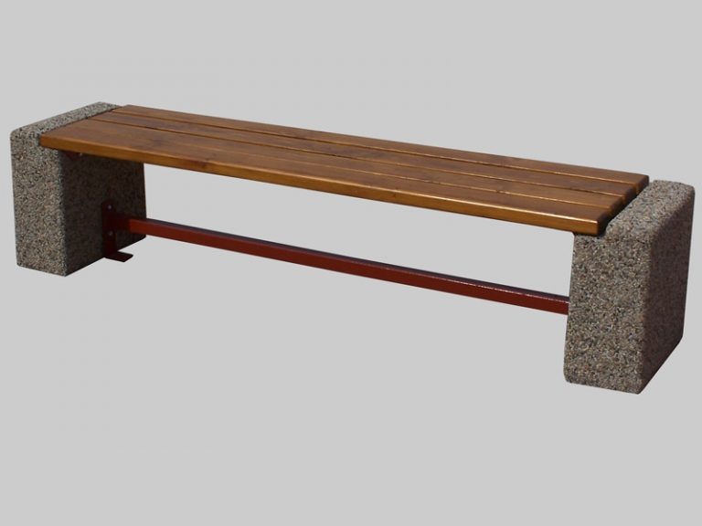 Ławka parkowa, wykonana z betonowej podstawy i drewnianego siedziska. Ławka miejska tego typu świetnie komponuje się w parkach i na innych terenach zielonych.