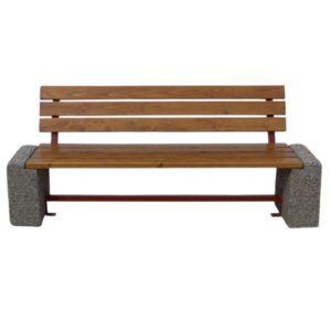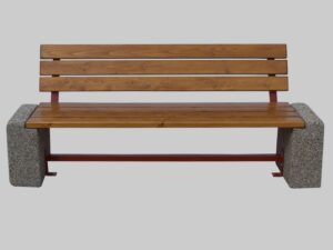 Ławka parkowa z oparciem, wykonana z betonowej podstawy i drewnianego siedziska. Ławka miejska tego typu świetnie komponuje się w parkach i na innych terenach zielonych.