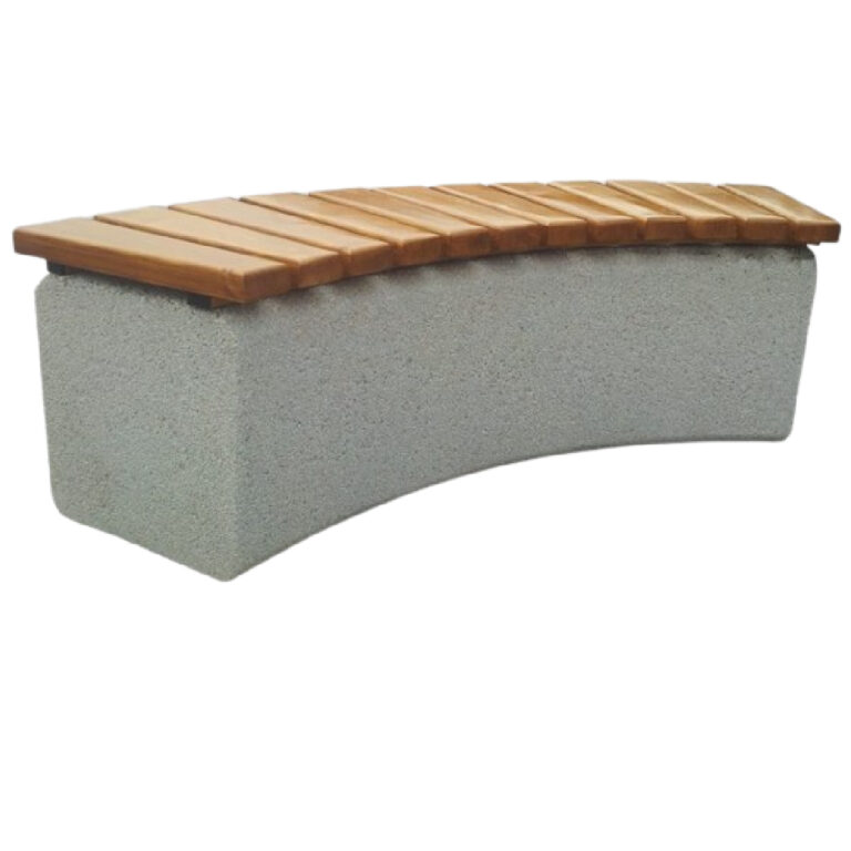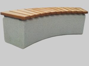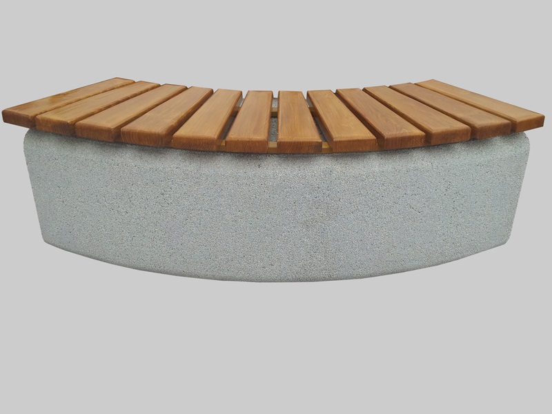 Ławka parkowa, wykonana z betonowej podstawy i drewnianego siedziska. Ławka miejska tego typu świetnie komponuje się w parkach i na innych terenach zielonych.