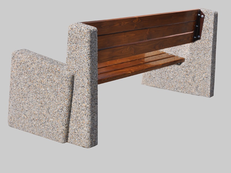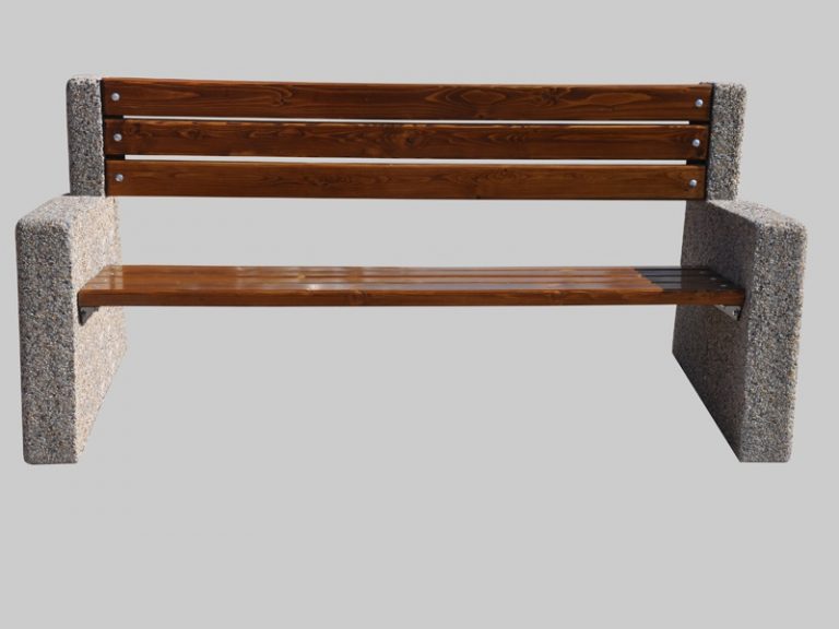 Ławka parkowa z oparciem, wykonana z betonowej podstawy i drewnianego siedziska. Ławka miejska tego typu świetnie komponuje się w parkach i na innych terenach zielonych.