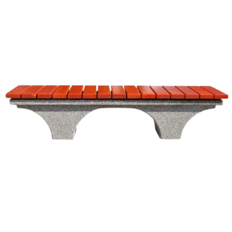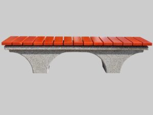 Ławka parkowa, wykonana z betonowej podstawy i drewnianego siedziska. Ławka miejska tego typu świetnie komponuje się w parkach i na innych terenach zielonych.