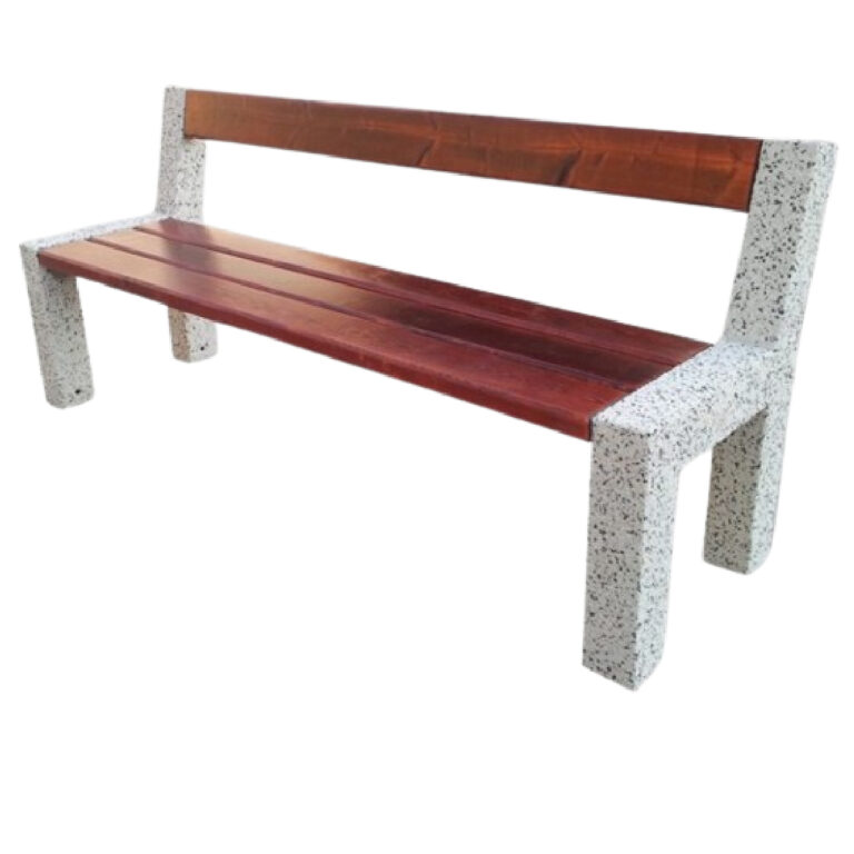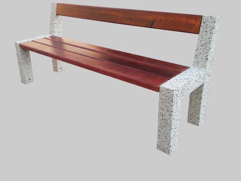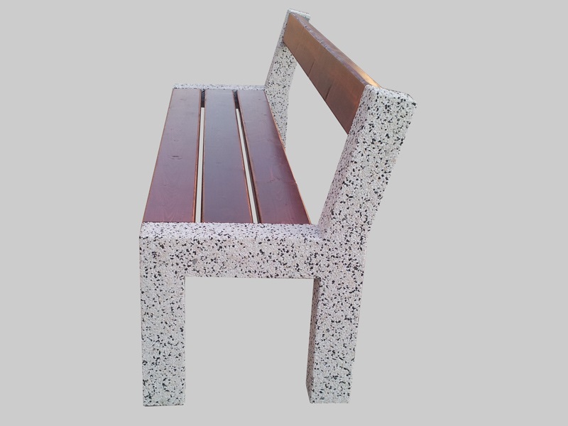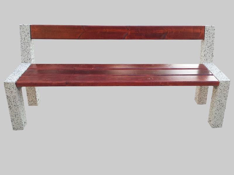 Wolnostojąca ławka parkowa z oparciem, wykonana z betonowej podstawy i drewnianego siedziska. Ławka miejska tego typu świetnie komponuje się w parkach i na innych terenach zielonych.