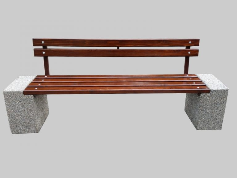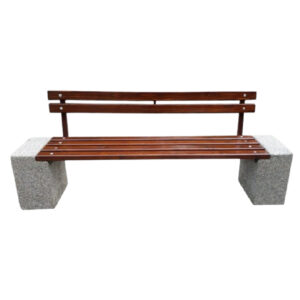 Ławka parkowa z oparciem, wykonana z betonowej podstawy i drewnianego siedziska. Ławka miejska tego typu świetnie komponuje się w parkach i na innych terenach zielonych.