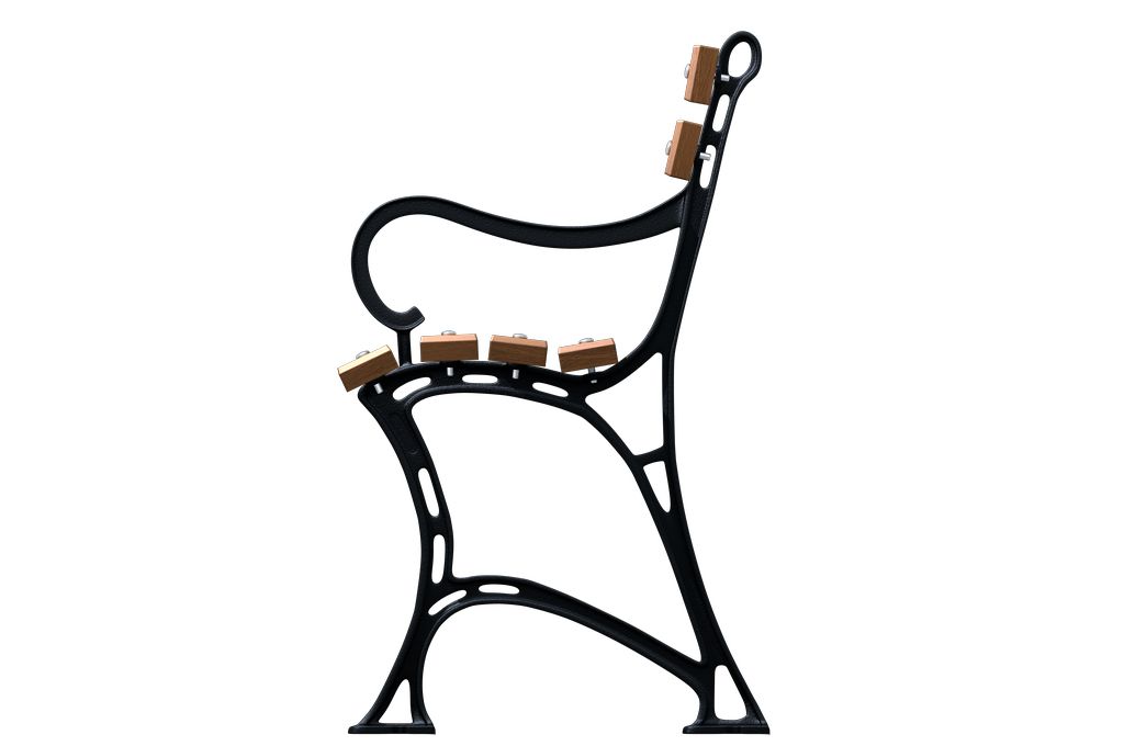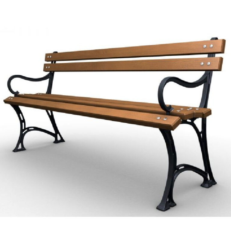 – konstrukcja ławki ogrodowej oparta na masywnych nogach żeliwnych,