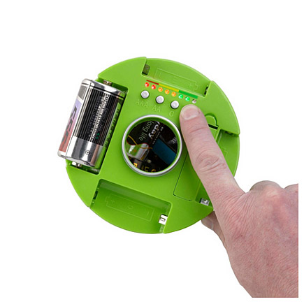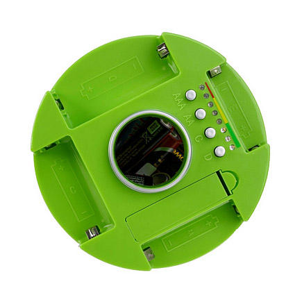 Pojemniki na baterie typu PN008 posiadają funkcję sprawdzania przydatności baterii. Poziom zużycia pokazywany jest na skali stopniowanej 8 kolorowymi diodami. I tak: