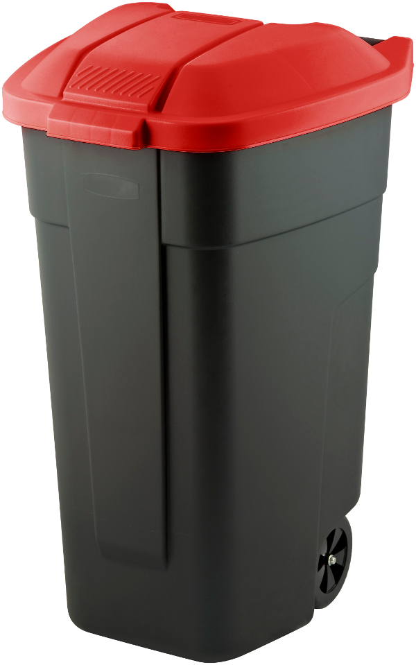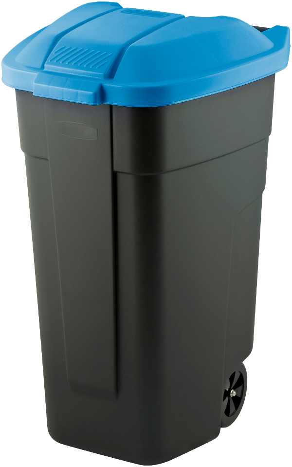 Pojemnik na odpady o pojemności 110 litrów, różnokolorowe pokrywy sprawiają że pojemnik to świetnie sprawuje się przy segregacji odpadów. U spodu pojemnika znajdują się dwa kółka, dzięki czemu łatwiej go przemieszczać nawet gdy jest pełen.