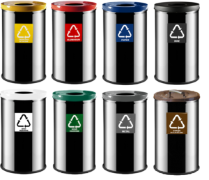 Kosz do segregacji odpadów zrobiony ze stali nierdzewnej. Kosz z naklejką wskazujący na typ odpadów do których jest przeznaczony. Pojemnik tego typu można stosować w budynkach jak i na zewnątrz. Kosze serii PW091 są wykonywane w różnych kolorach, każdy z nich przeznaczony jest do składowania innego rodzaju odpadów: plastik, aluminium, papier, inne, szkło białe, szkło kolorowe, metal lub odpady biologiczne.