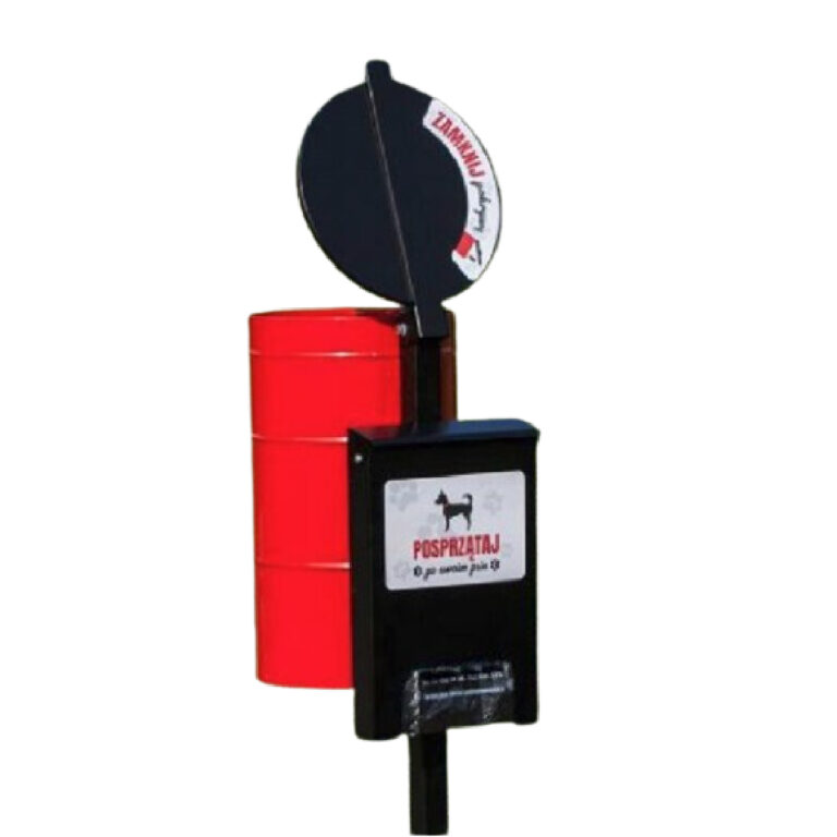 Kosz stalowy przeznaczony na składowanie psich odchodów wyposażony w dystrybutor woreczków „Wiki”. Dzięki zastosowanej klapie ogranicza wydostawaniu się nieprzyjemnych zapachów do otoczenia oraz zapobiega dostawaniu się do wewnątrz opadów atmosferycznych. Opisy na produkcie informują o przeznaczeniu. Zastosowanie klapy oraz naklejek sprawia że kosz wygląda elegancko i schludnie.