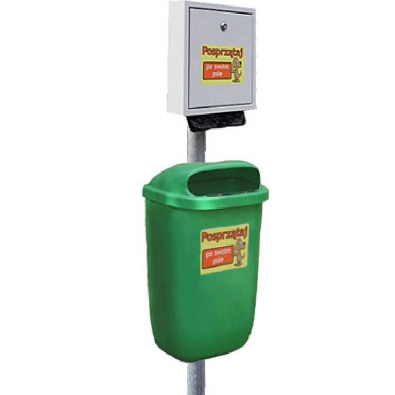 - kosz na psie odchody wykonany z polietylenu wysokociśnieniowego wysokiej gęstości. Odporny na urazy mechaniczne i zmieniające się warunki atmosferyczne,