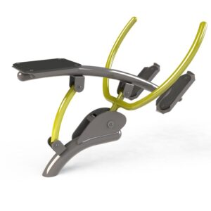 Po zajęciu miejsca siedzącego należy postawić stopy na stopnicach, a rękoma chwycić za drążki. Następnie przyciągając je do siebie i jednocześnie prostując nogi, należy odchylić