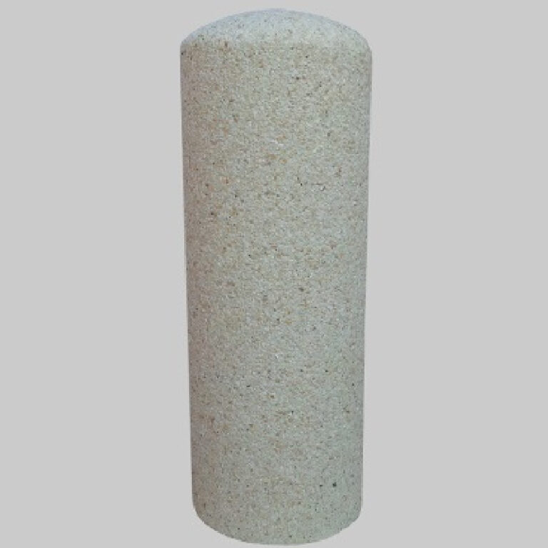 Słupek uliczny wykonany z betonu płukanego. Słupki betonowe są trwałym elementem małej architektury miejskiej, cechuje je duża wytrzymałość dzięki czemu świetnie sprawdzają w roli blokowania dojazdu samochodem w miejsca dla nich nie przeznaczone.