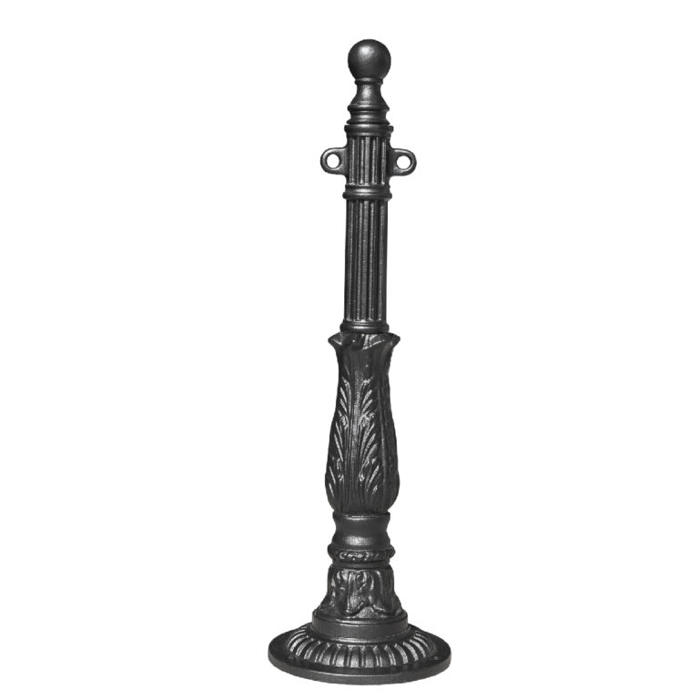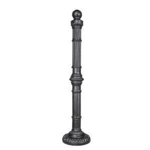 Słupek uliczny o podstawie o średnicy 29 cm i wysokości 100 cm to solidna konstrukcja, idealna do zastosowań w przestrzeni publicznej. Dzięki wykonaniu z żeliwa i stali, jest odporny na działanie czynników zewnętrznych oraz uszkodzenia mechaniczne.