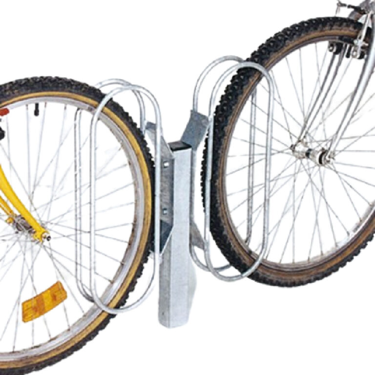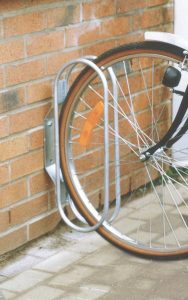 Uchwyt rowerowy naścienny, mocowany do powierzchni przy użyciu śrub. Prezentowany stojak na rowery zajmuje skonstruowany jest w taki sposób, że w momencie gdy nie ma przy nim zaparkowanych rowerów to zajmuje bardzo małą ilość przestrzeni.