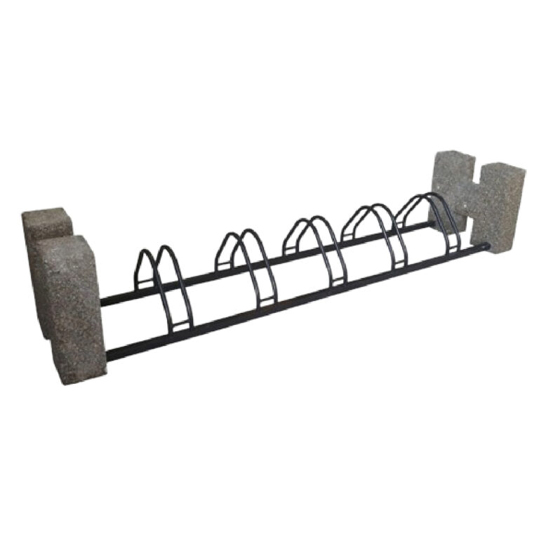 Elementy betonowe wykonane w technice odkrytych kruszyw. Element stalowy wykonany ze stali czarnej ocynkowanej i dodatkowo malowany proszkowo.