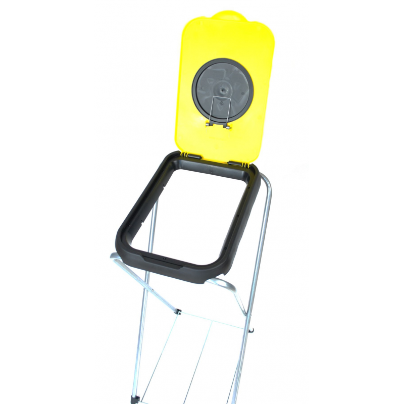 Stojak o pojemności 120 litrów posiadający dolną podstawę worka zapobiegającą rozdarciu oraz pokrywę, która dodatkowo posiada mniejszy otwór wrzutowy. Produkt sprawdza się w składowaniu odpadów typu butelki. Domykana klapka zamontowana w pokrywie ogranicza dostawanie się do wnętrza opadów atmosferycznych oraz różnego rodzaju owadów i robactwa.