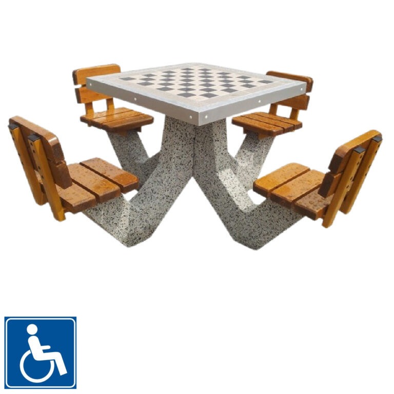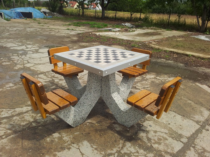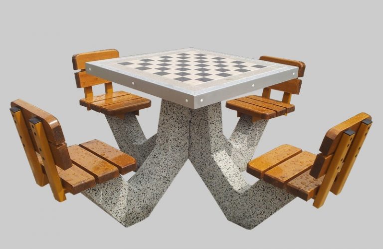 Betonowy stół do gry w szachy, stół posiada siedziska z oparciami dla czterech osób.