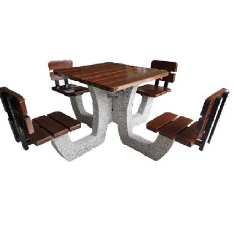 Betonowy stół rekreacyjny z czterema siedzeniami. Stół piknikowy tego typu na ogół jest umieszczany jest w parkach i innych terenach zielonych.