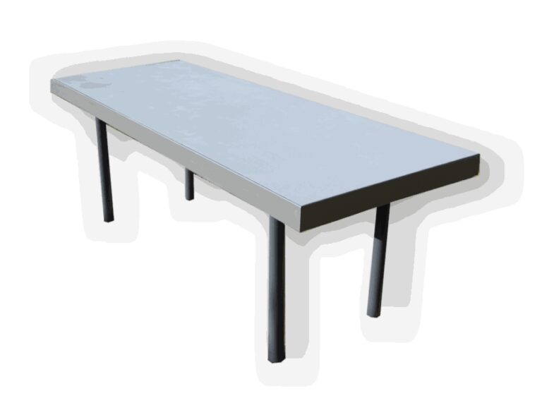 Blat stołu wykonany z betonu C40/50 na bazie płukanych kruszyw i cementu szybkowiążącego CP 42,5R w ramie z kątowników stalowych.
