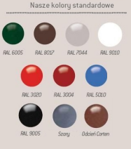 – stelaż zrobiony z profilu stalowego 30×50 mm, malowany na kolory z naszej palety RAL,